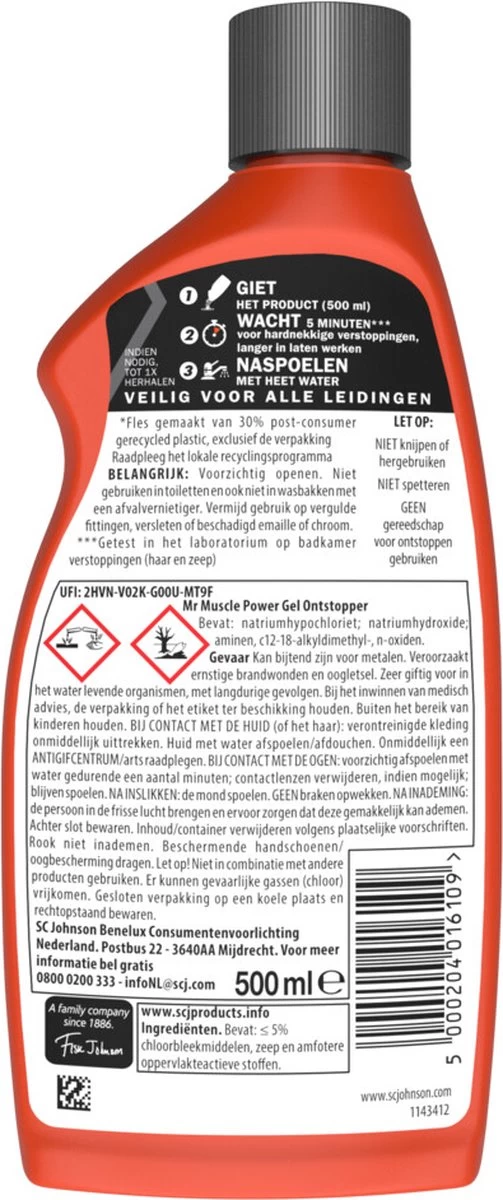 3x Mr. Muscle Power Gel Ontstopper 500 Ml