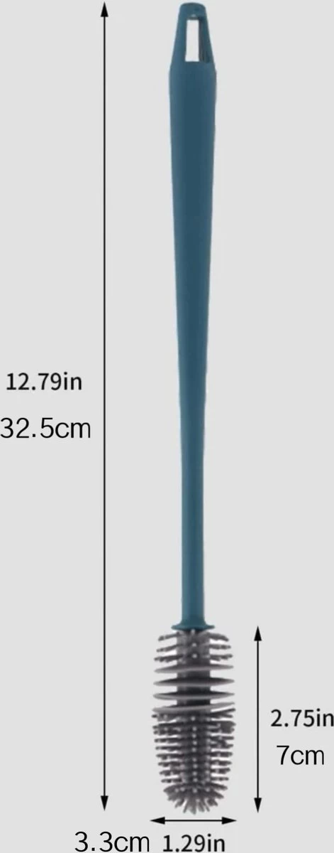 - Grondige reiniging: met de lange handgreep en de flexibele siliconen borstelhaar kunt u alle hoeken, vuil en moeilijk bereikbare gebieden van flessen, thee-/fruitei, flacon, koffiecontainer, tube en keukengerei reinigen.
