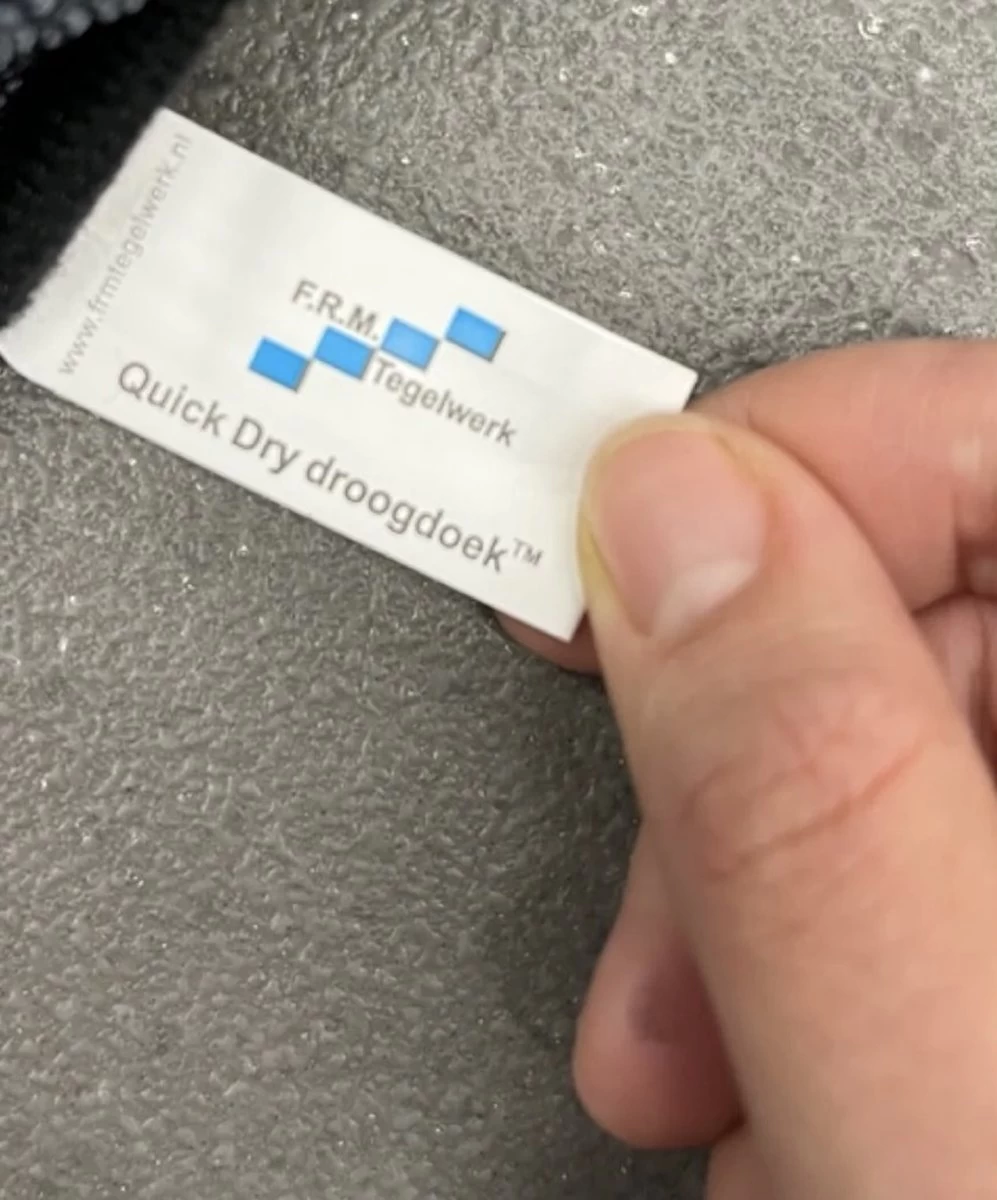 De welbekende FRM Tegelwerk Quick Dry Droogdoek. Ons pareltje uit de collectie.