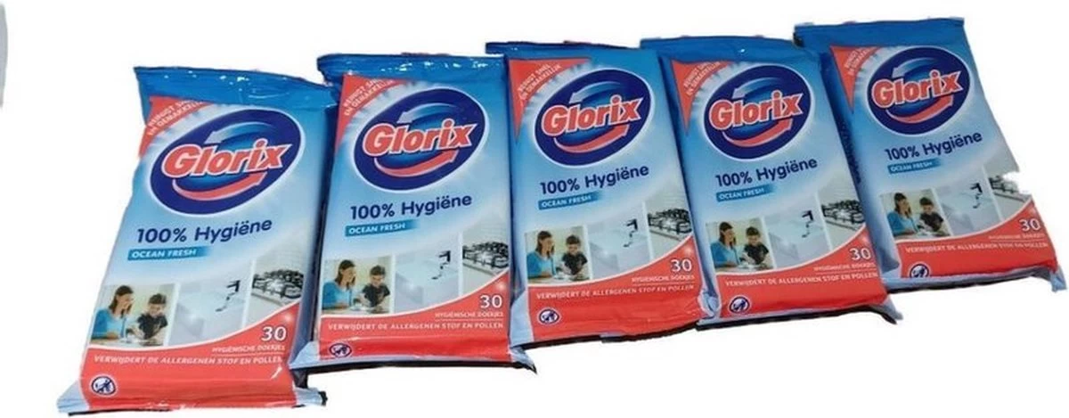 6x 30 vochtige schoonmaakdoekjes van Glorix met Ocean geur