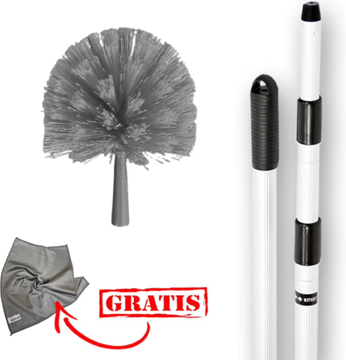 Weg met dat vieze spinnenrag! Deze ragebol van Professionele kwaliteit met telescoopsteel is uitschuifbaar tot 4.2 meter! Voor jarenlang gebruik tegen die vervelende spinnenwebben en ander vuil. Met deze uitschuifbare plumeau kom je gemakkelijk overal bij.