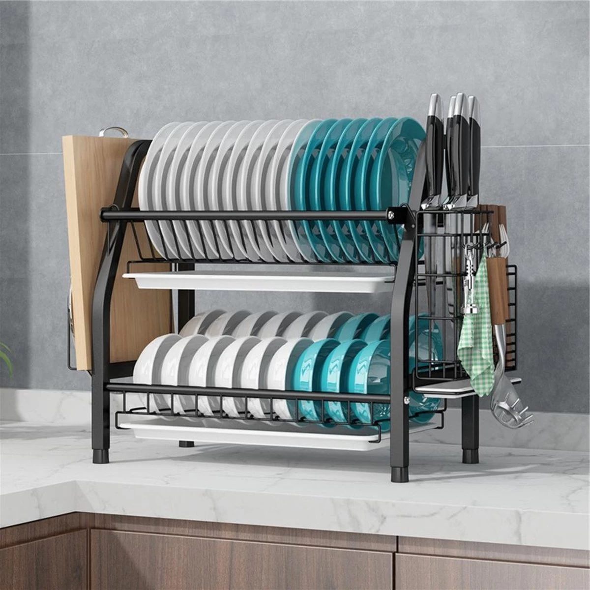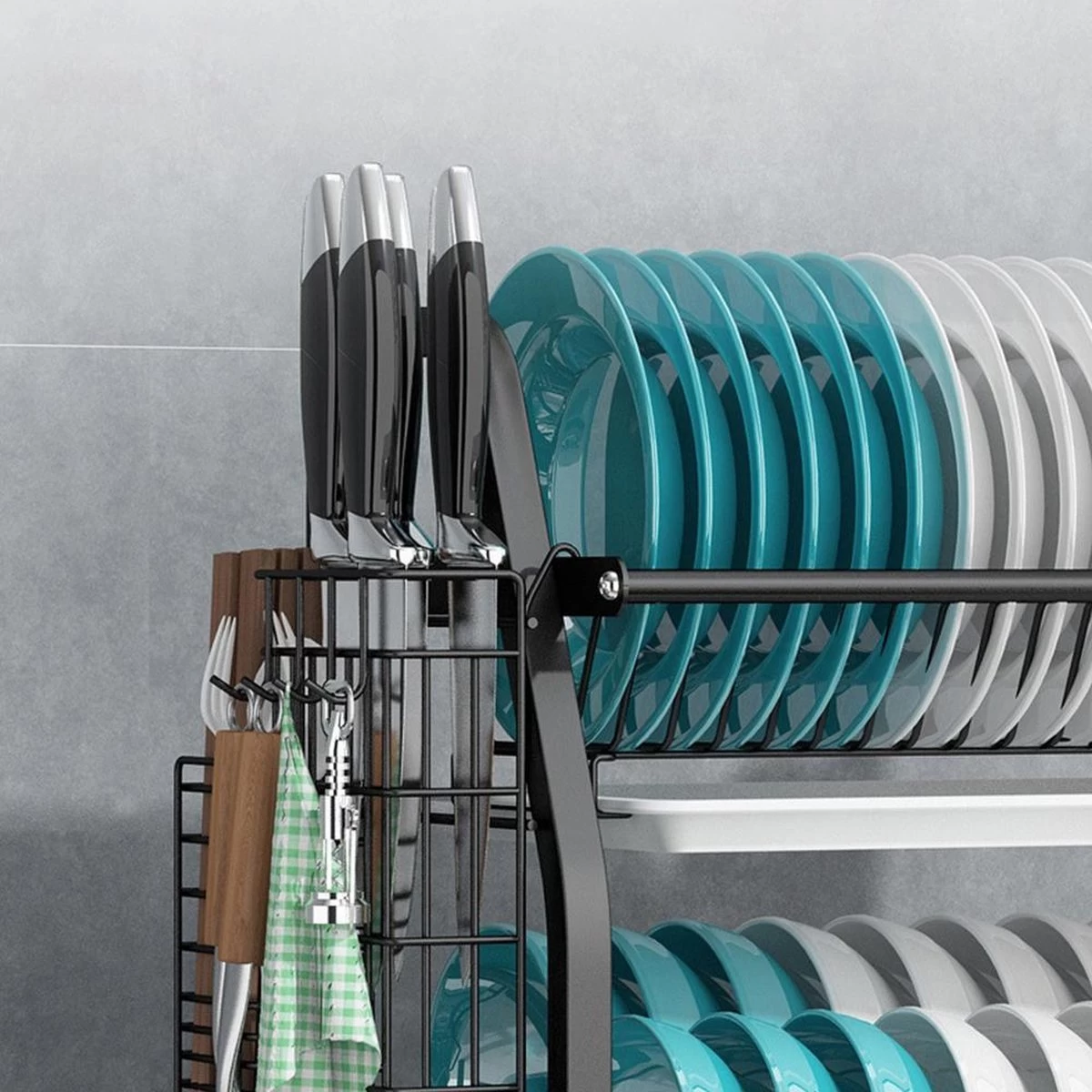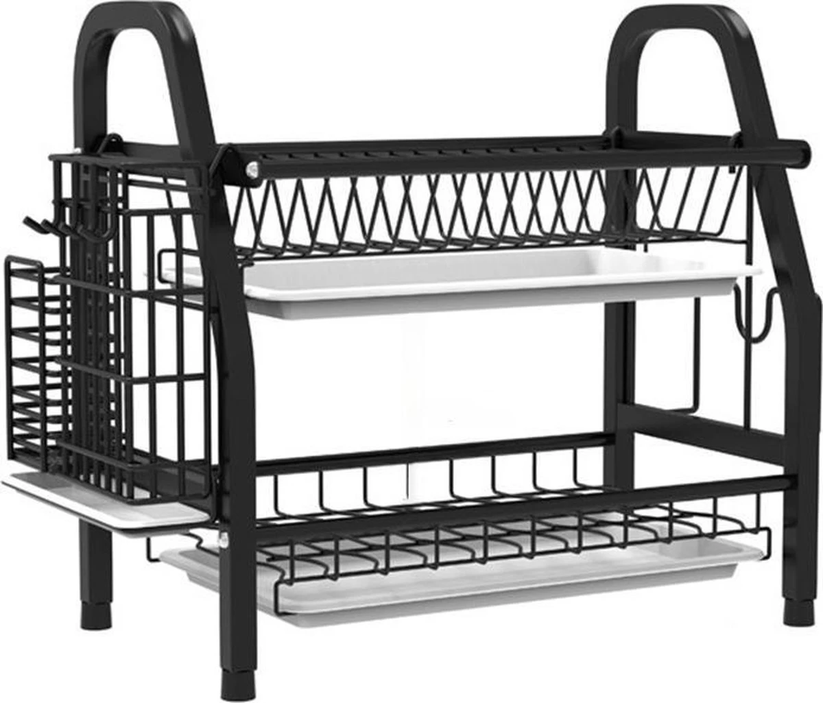 Merkloos Afdruiprek – Afdruiprek Met Lekbak – Afwas – Metaal – Zwart – RVS Afwasrek