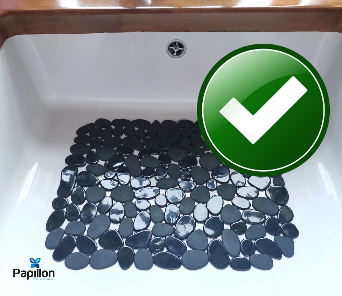 Merkloos Papillon – Gootsteenmat – 40×30 Cm – Kiezels Zwart