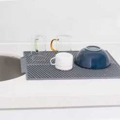 Navaris Siliconen Droogmat Met Afvoer – Aanrecht Droogmat Voor Afwas, Borden, Bestek, Glazen – Grijs