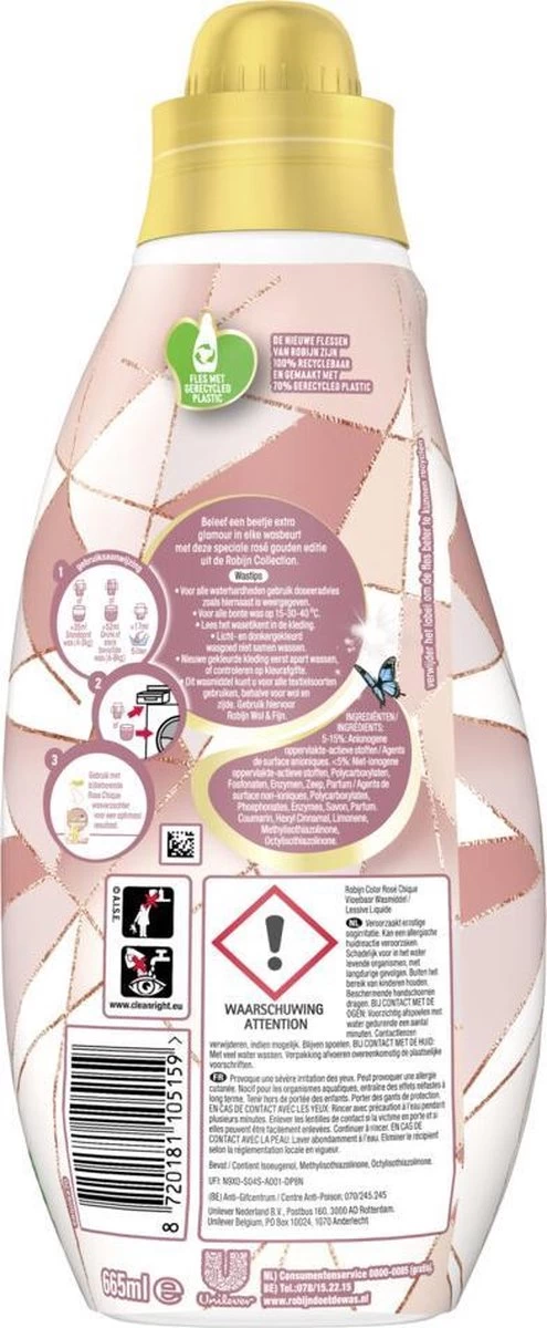 - Gebruik voor het beste resultaat samen met Robijn Rosé Chique wasverzachter