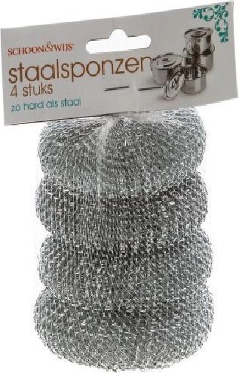Staalsponzen 4 Delig – Pannenspons – Schuurspons – Roestvrij Staal (RVS) – Staalspons – 4 Stuks