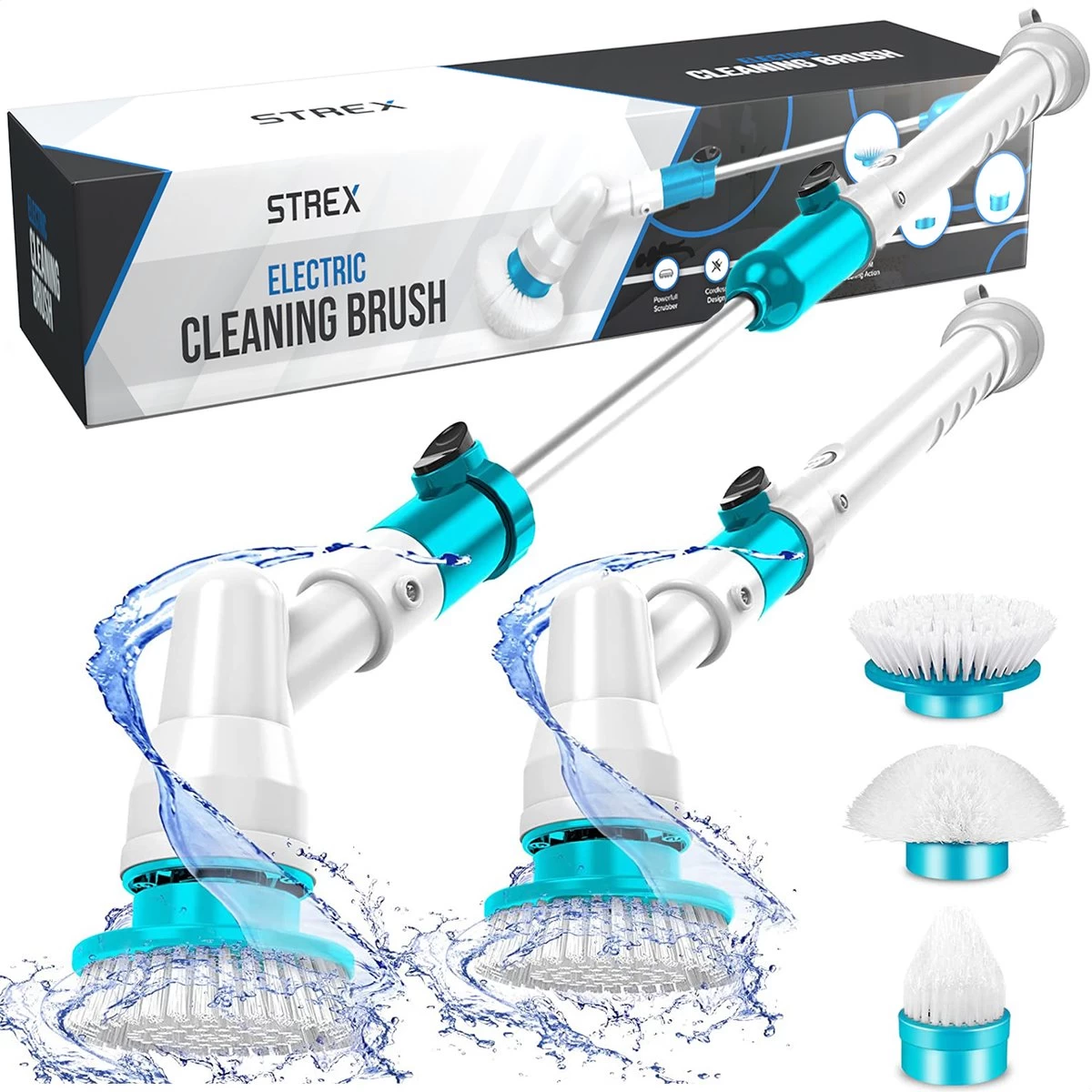 De elektrische schoonmaakborstel van Strex wordt geleverd met een uitschuifbaar roestvrijstalen handvat. Hierdoor kom je gemakkelijker bij hogere plekjes, maar vooral belangrijk is dat je niet in vervelende houdingen hoeft te zitten en dus geen last krijgt van je rug. Er worden drie opzetborstels meegeleverd. De extra brede en platte borstelkop wordt gebruikt voor vlakke oppervlakten. De ronde borstelkop is ideaal als reinigingsborstel voor de badkuip, de gootsteen of het toilet. De hoekborstelkop is perfect voor voegen, randjes, hoekjes en andere krappe plaatsen.