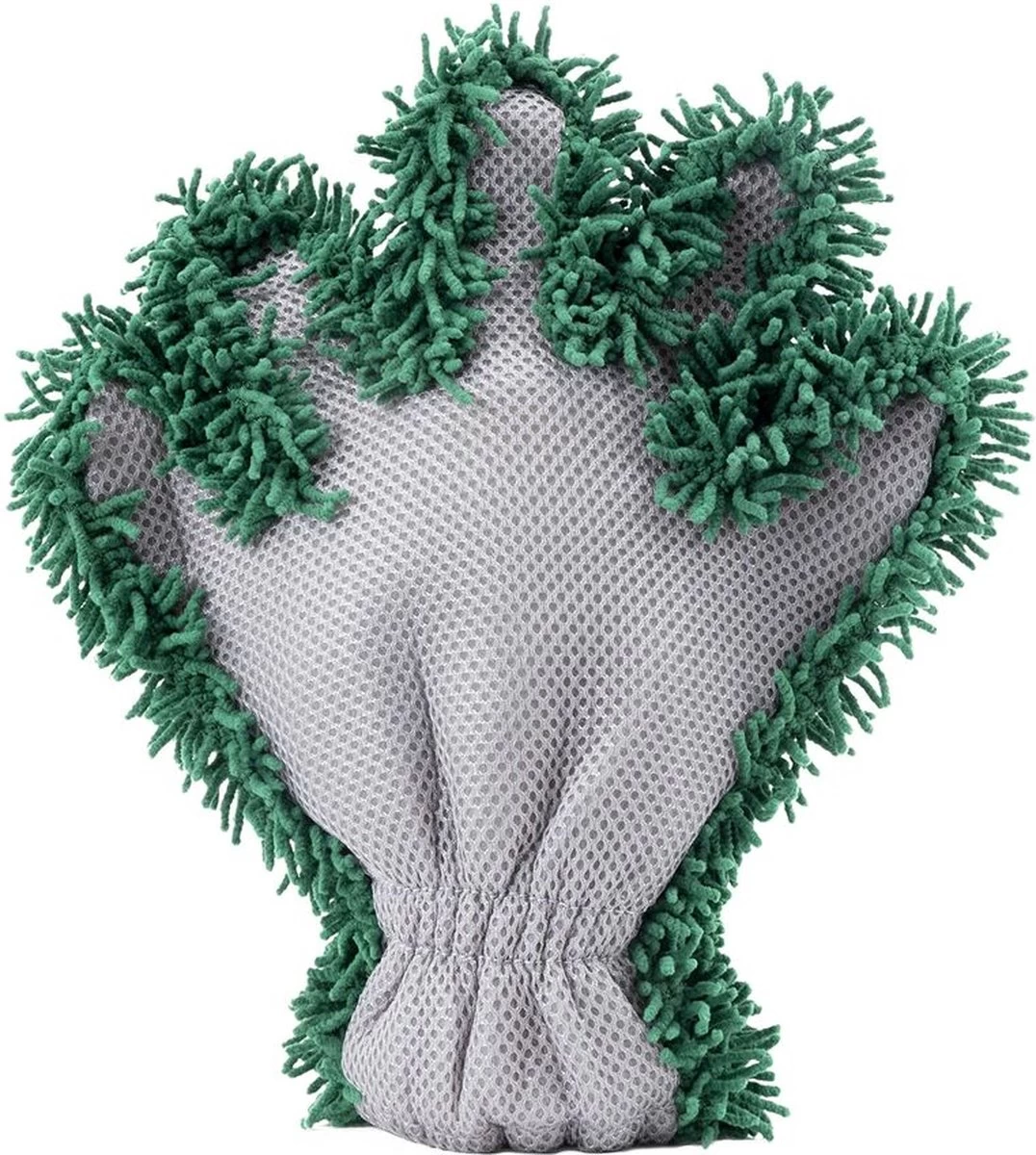 De goed reinigende werking van de groene microvezel zijde zorgt ervoor dat zelfs het hardnekkigste vuil eenvoudig kan worden verwijderd. Met de 3D insecten zijde kunnen niet krasgevoelige oppervlaktes zoals; koplampen, spiegels en ramen insectenvrij worden gemaakt. Gebruik deze zijde niet op het lakwerk van de auto! De microvezels in de washandschoen neemt meer water en shampoo op. Daarnaast zorgt het zacht absorberende materiaal voor een betere verwijdering van vuil en vet.