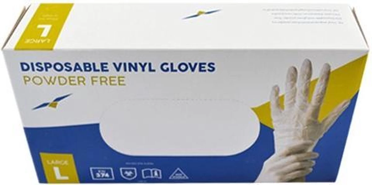 Vinyl wegwerphandschoenen beschermen en voorkomen besmettingsgevaar.
