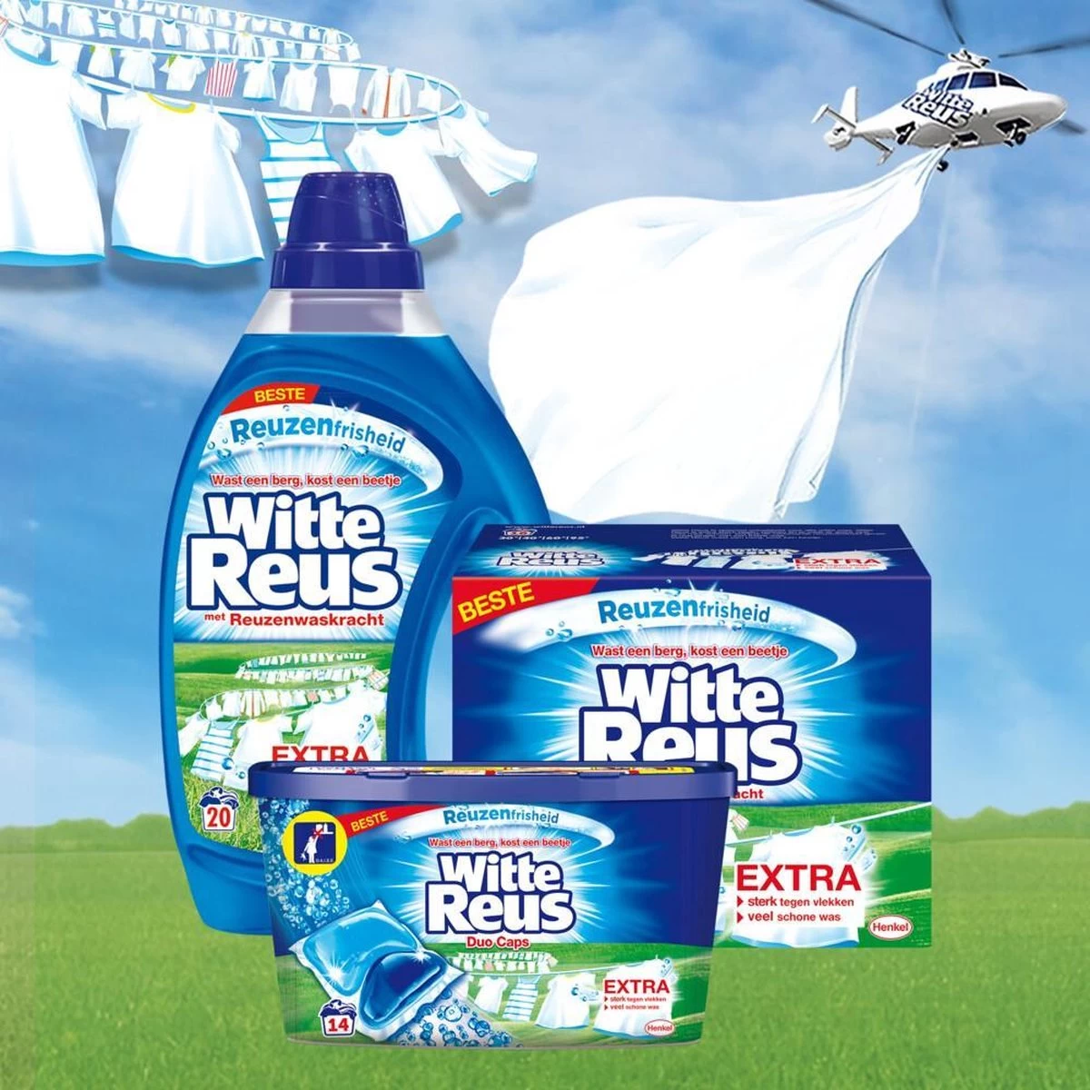 Of het nu gaat om vloeibare wasmiddelen, wasmiddelcapsules, poeders of megaparels โ Witte Reus is bijzonder effectief tegen vlekken en wast uw wasgoed weer stralend schoon en fris. Witte Reus wast een berg, kost een beetje.